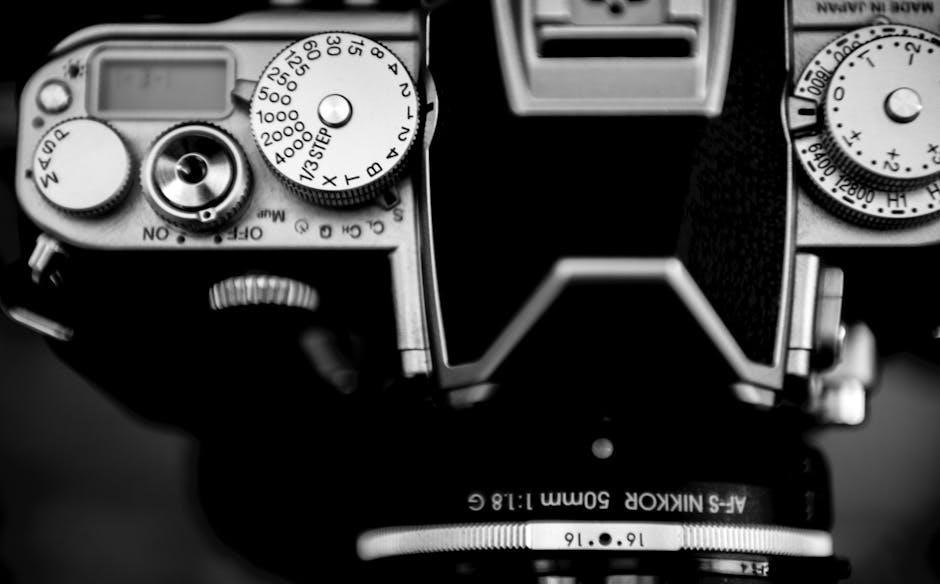 Explore the Nikon F4’s robust construction‚ control placement‚ and detailed viewfinder display‚ as explained in the comprehensive Nikon F4 manual for optimal use․